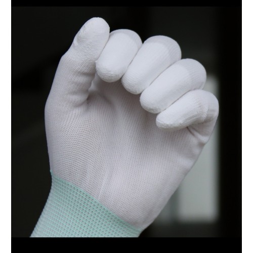 優點:透氣性好,透氣性強,長時間作業也不感悶熱.指尖觸感靈敏,不易產生塵埃及靜電,適合凈化室作 業。長纖維彈力尼龍的手掌貼付PU層,不易產生塵埃,適合清潔工作.彈力強,完全貼合手形,不易打滑,手指活動更靈活